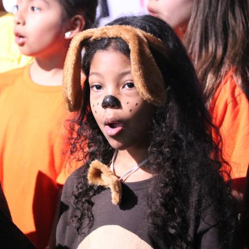 "Nuestra escuela acaba de presentar El Mago de Oz con 114 estudiantes, el alcalde de nuestra ciudad (el Mago), el director, dos profesores, y dos perros verdaderos. ¡Fue  fenomenal! la colaboración de padres, de la facultad y de los estudiantes unió a nuestra comunidad."
